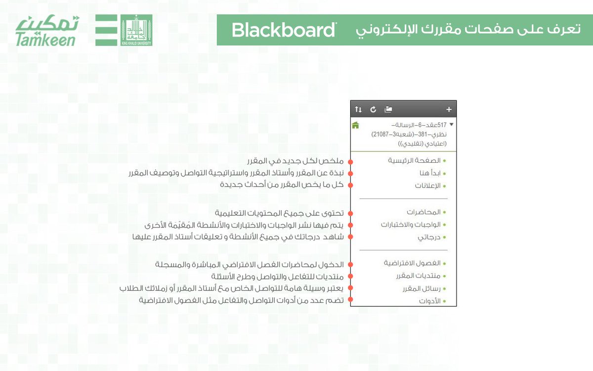 Kku E Learning On Twitter تعرف على صفحات مقررك الإلكتروني في نظام إدارة التعلم بلاك بورد Blackboard تمكين التعلم الإلكتروني