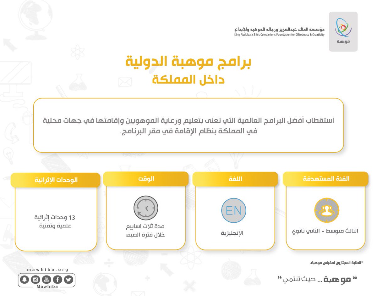 موهبة On Twitter أفضل البرامج الدولية العالمية على أرض المملكة خلال الإجازة الصيفية إذا كنت من الطلبةالمرشحين في البرنامج الوطني للكشف عن الموهوبين انضم إلينا ونم شغفك معنا بدورات علميةمكثفة في مجالات العلوم و الهندسة و
