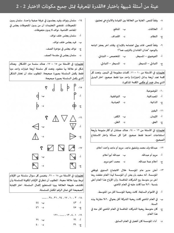 كم درجة النجاح في اختبار القدرة المعرفية الموقع المثالي