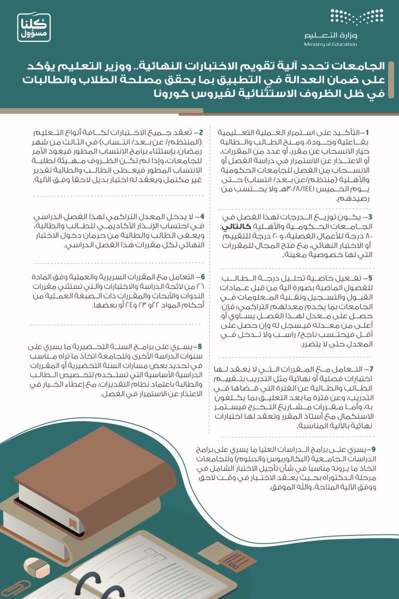 محمد الزارع On Twitter آلية تقويم الاختبارات النهائية عن ب عد في الجامعات الحكومية والأهلية شكرا لمعالي وزير التعليم الدكتور حمد آل الشيخ شكرا لأصحاب المعالي مديري الجامعات شكرا ل أبطال التعليم