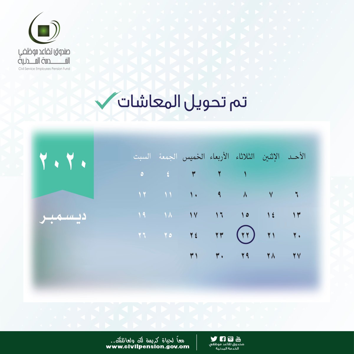 صندوق تقاعد موظفي الخدمة المدنية ع مان On Twitter أعزاءنا المتابعين تم تحويل المعاشات التقاعدية لشهر ديسمبر للبنوك اليوم الثلاثاء