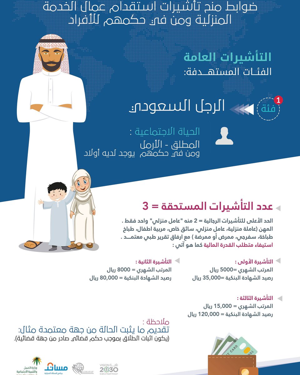 الحياة المثالية للإستقدام On Twitter تعرف على ضوابط منح تأشيرات استقدام عمال الخدمة المنزلية ومن في حكمهم للأفراد فئة الرجل السعودي المطلق والأرامل ومن في حكمهم ويوجد لديه اطفال وزارة العمل التنمية الاجتماعية جدة مساند