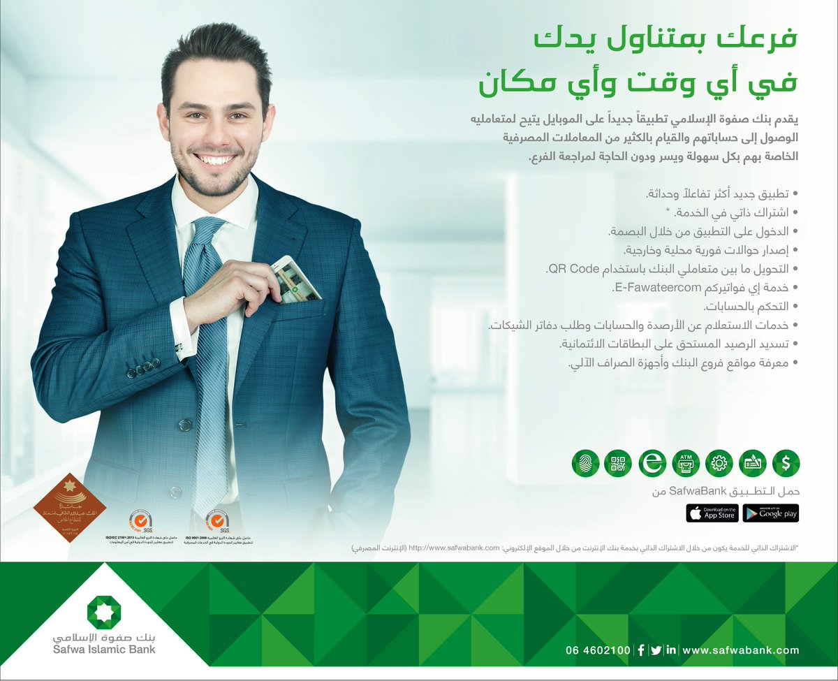 Safwa Islamic Bank On Twitter لمزيد من التفاصيل يرجى الاتصال على الرقم 064602100 الانترنت المصرفي