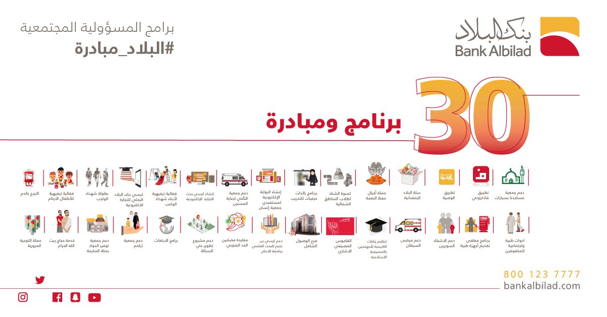 بنك البلاد Bank Albilad Sur Twitter مبادراتنا تجاه مجتمعنا 30 برنامج ومبادرة في المسؤولية المجتمعية Https T Co Hmhugrcvwj البلاد مبادرة المسؤولية الاجتماعية Https T Co Wwpifs8uog