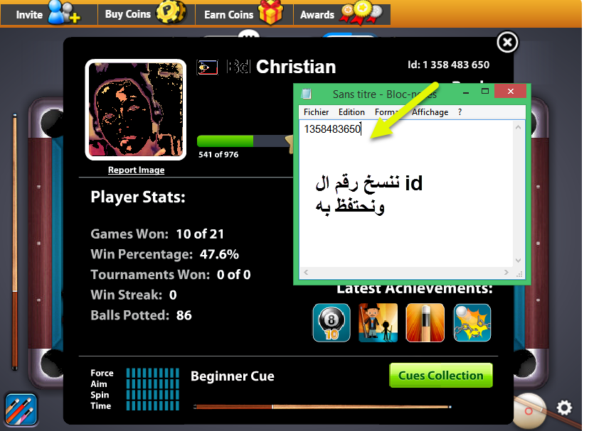 كيف اعرف فيس بوك خصمي في لعبة 8ball Pool Youtube