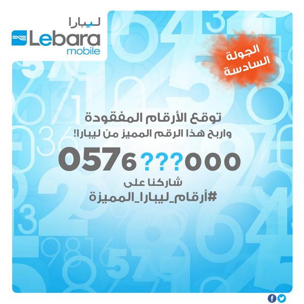 Lebara Mobile Ksa على تويتر ستنتهي المسابقة الساعة الخامسة توقعوا هذا الرقم المميز على تويتر والفيس بوك على أرقام ليبارا المميزة لفرصة ربحه Http T Co Xfpe2onoic