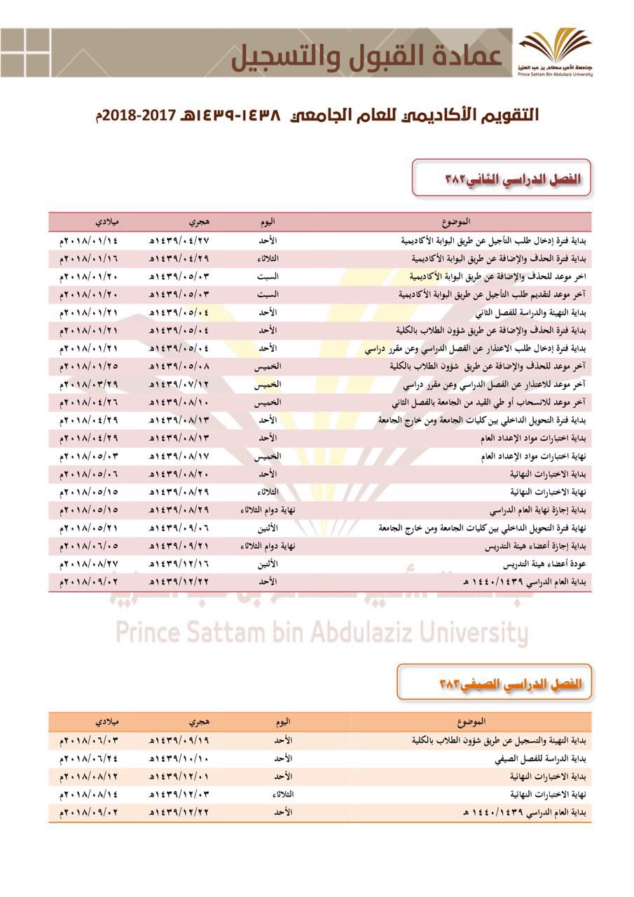 جامعة الأمير سط ام على تويتر التقويم الأكاديمي للعام الجامعي ١٤٣٨ ١٤٣٩