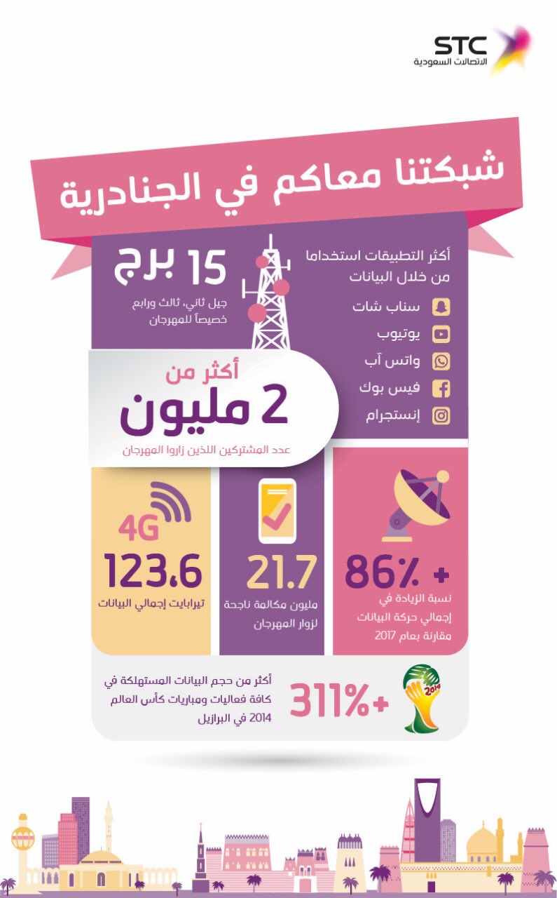 Stc السعودية على تويتر شبكتنا معاكم وين ما كنتم انفوجرافيك لاحصائيات استخدام الشبكة في الجنادرية ٣٢