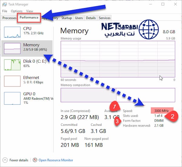 معرفة استهلاك وحالة وسرعة الرام ويندوز