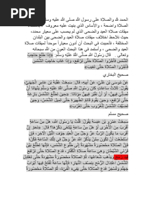 النهي عن الصلاة بعد طلوع الشمس حتى ترتفع قيد رمح Youtube