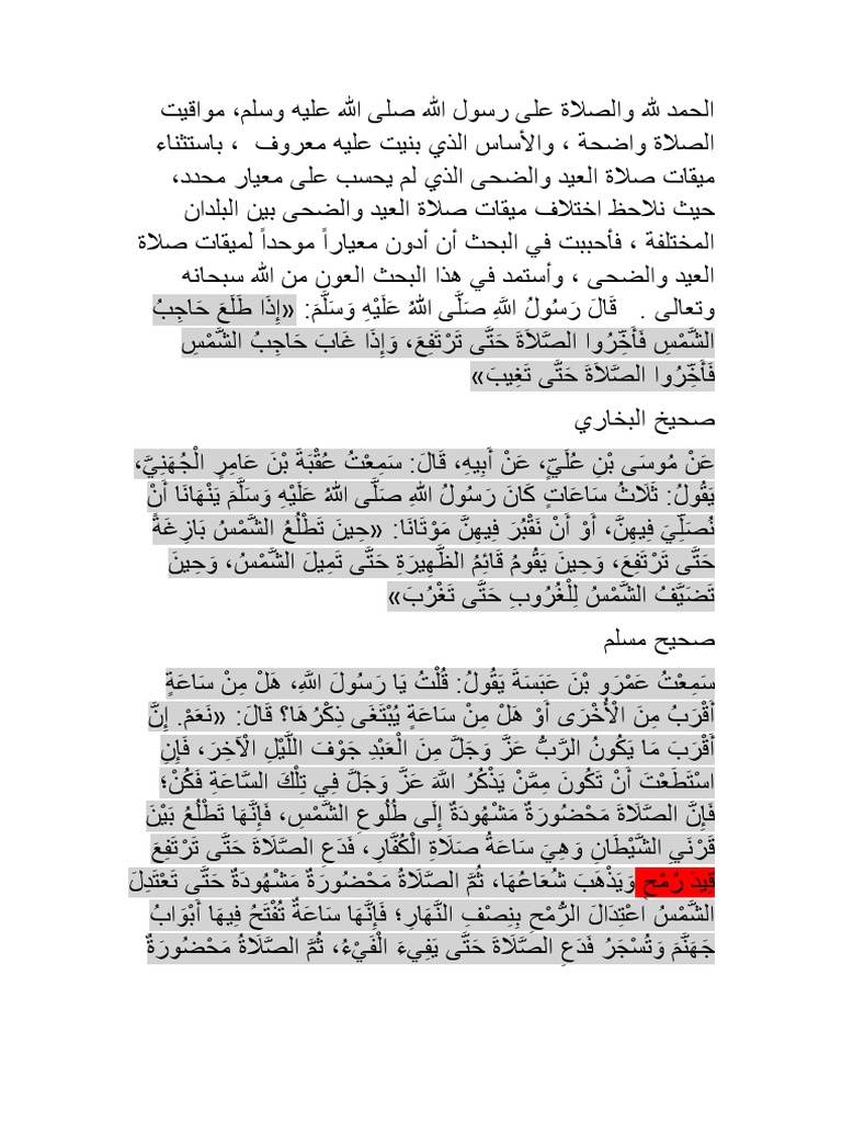الأستاذ الدكتور عبدالله المسند مقالات تحديد وقت النهي بين شروق الشمس حتى بلوغها ق يد رمح