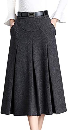 اشتري اونلاين بأفضل الاسعار بالسعودية سوق الان امازون السعودية تنورة طويلة نسائية شتوية عالية الخصر بثنيات من الصوف مع حلقات حزام رمادي داكن Large