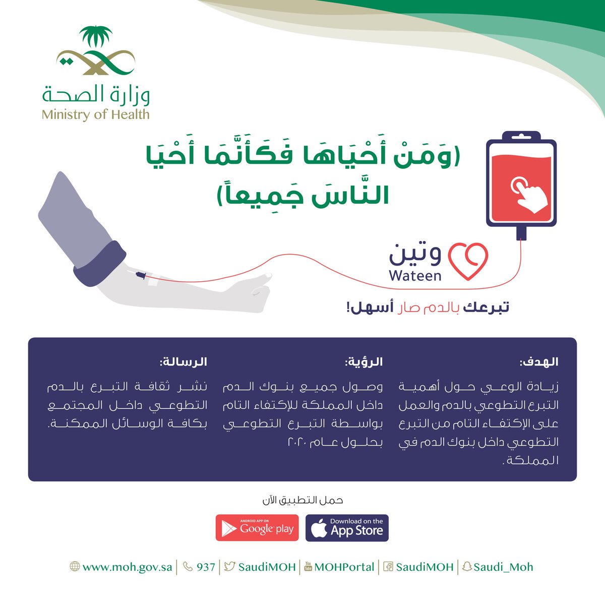 و ز ا ر ة ا لـ صـ حـ ة السعودية On Twitter مع تطبيق وتين تبرعك بالدم صار أسهل حمل التطبيق الآن Https T Co I8kazpbhtz الحرف عندك