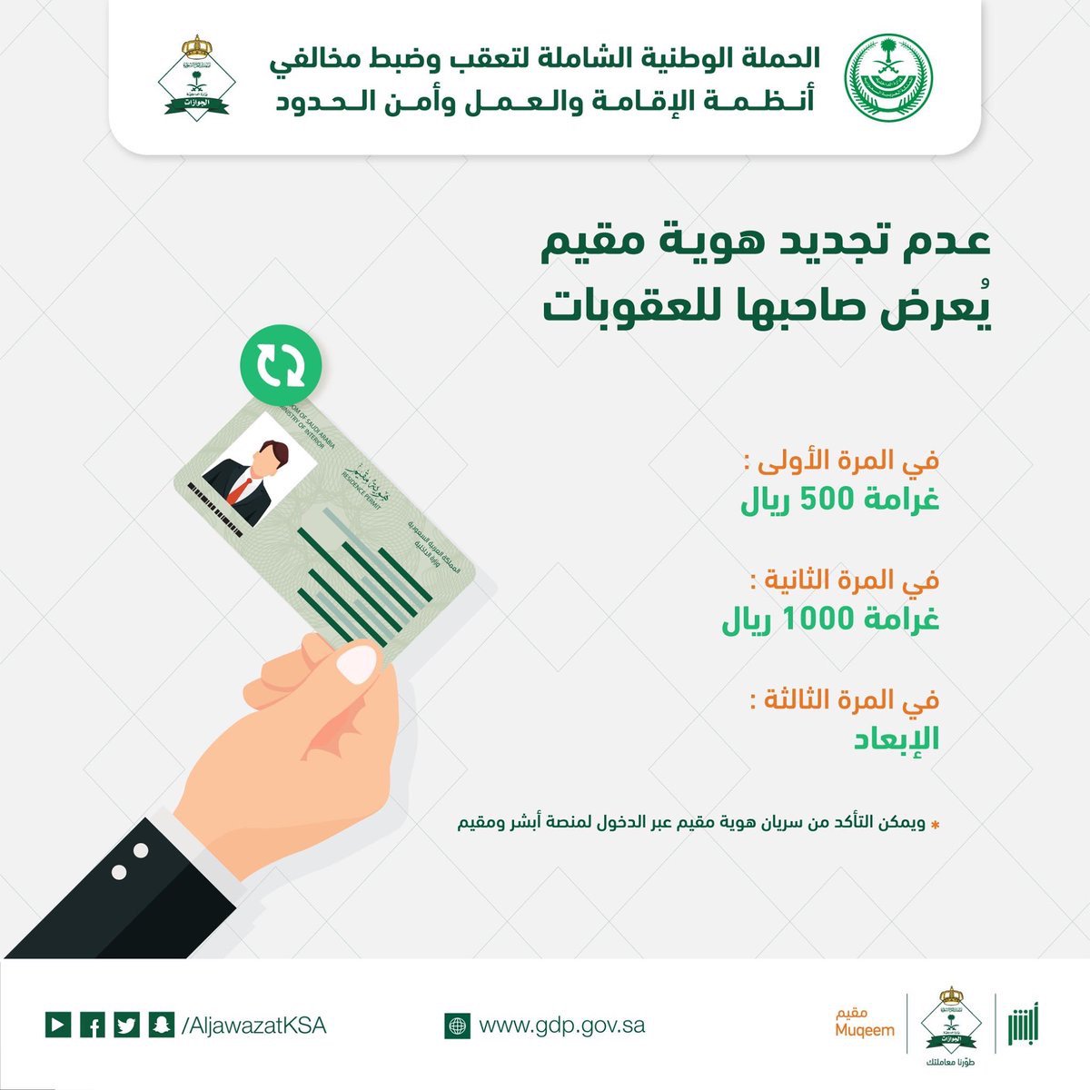الجوازات السعودية V Twitter أهلا بك تفرض غرامة تأخير تجديد هوية مقيم بعد إنتهاء صلاحية سريانها بـ ٣ أيام سعدنا بتواصلك