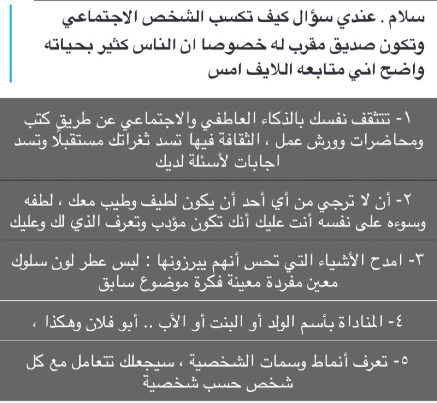 تركي Auf Twitter سؤال وجواب أهم خمس خطوات دقيقة تكون ذكي إجتماعي ا