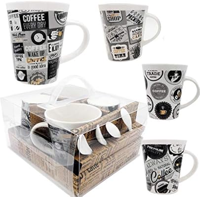 كوب قهوة مجموعة من 4 أكواب قهوة 28 جرام ا طقم أكواب سيراميك عالي الجودة مع ملعقة وشارات القهوة الكلاسيكية المميزة المتنوعة في مجموعة هدايا حصرية في صندوق Amazon Ae
