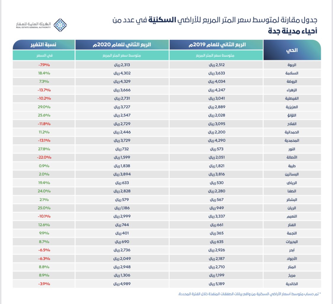 عد اد جدة On Twitter مقارنة بين عامي 2019 و 2020 لمتوسط سعر المتر المربع للأراضي السكنية في عدد من احياء جدة