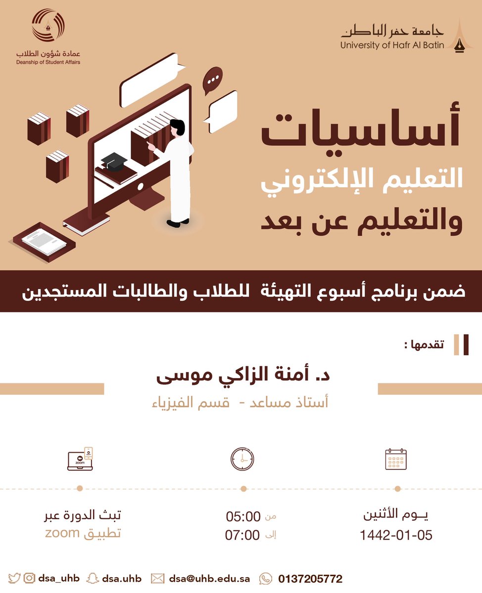 جامعة حفر الباطن On Twitter عمـادة شـؤون الطـلاب بـ جامعة حفر الباطن تدعـو الطلبـة المستجديـن لحضـور دورة أساسيـات التعليـم الإلكترونـي والتعليـم عـن بعـد على الرابـط Https T Co 1e9zcb9mrk Https T Co Ddxnhmhkna