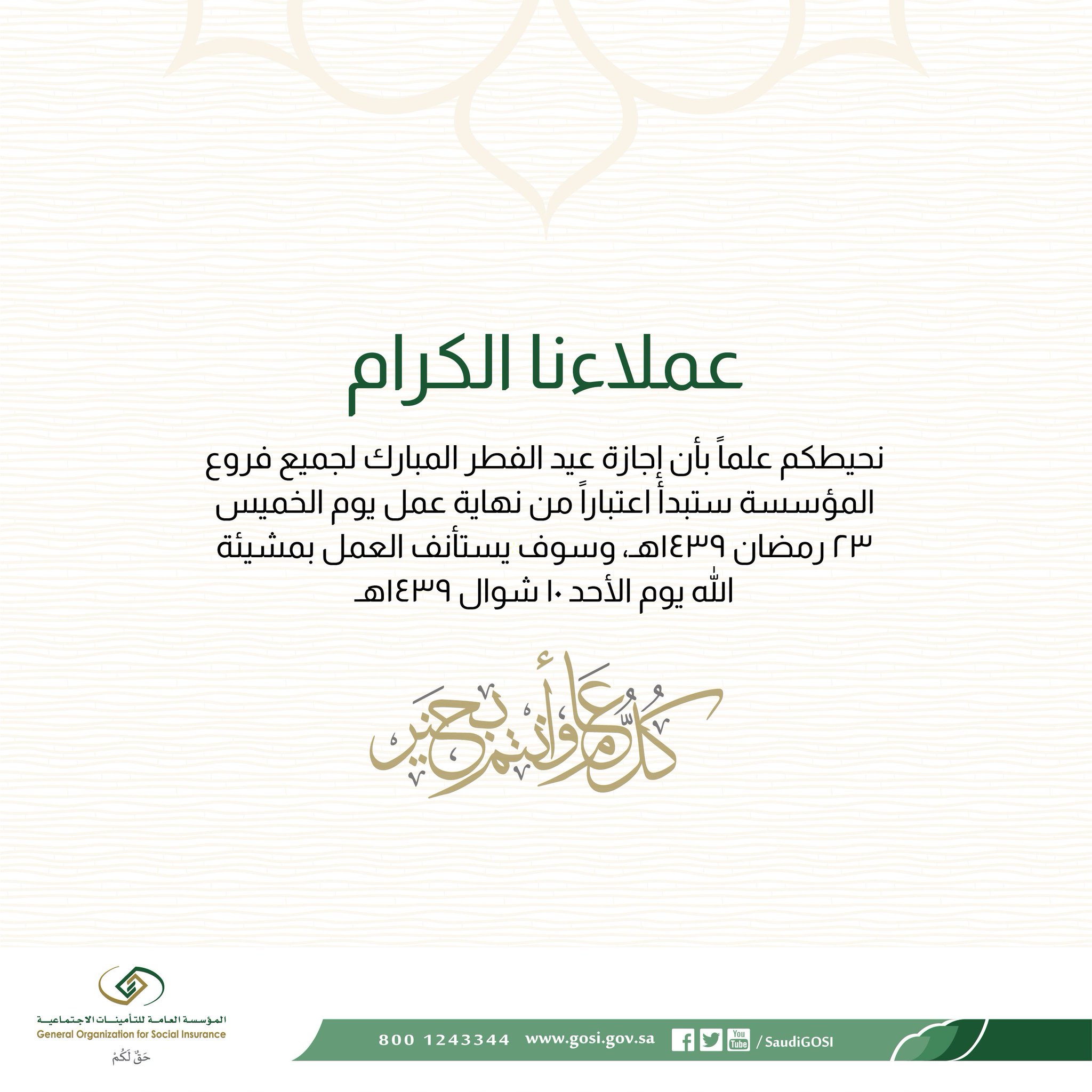 التأمينات الاجتماعية On Twitter إجازة عيد الفطر المبارك لفروع التأمينات الاجتماعية