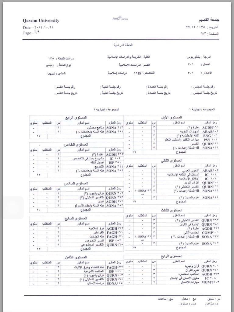طلبة جامعة القصيم Di Twitter الخطة الدراسية لقسم الدراسات الإسلامية موض ح فيها عدد الساعات و المتطلبات Https T Co Imsr1waw6h